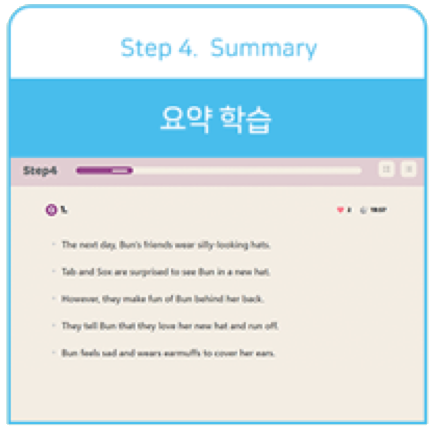ㆍK레벨은 Listen & Repeat 기능이 적용되어 스토리 2번 자동 재생 후 학습이 가능합니다.
